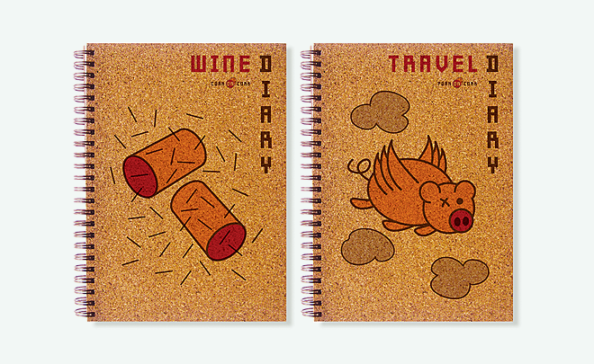 Illustrations for a set of diary covers printed on Cork